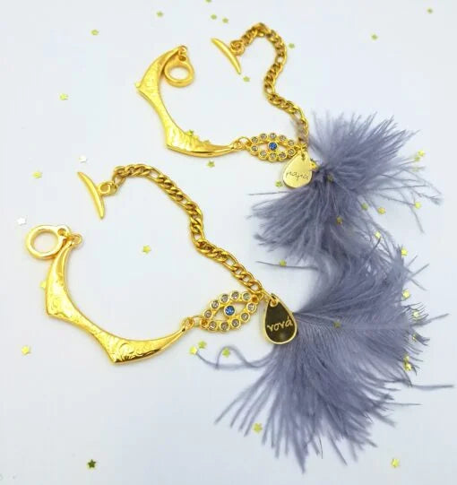 Βραχιόλι, αλυσίδα χρυσό χρώμα, μάτι με στρας γκρι και φτερό γκρι, για την μαμά, την νονά, την θεία, την αδερφή και την γιαγιά.