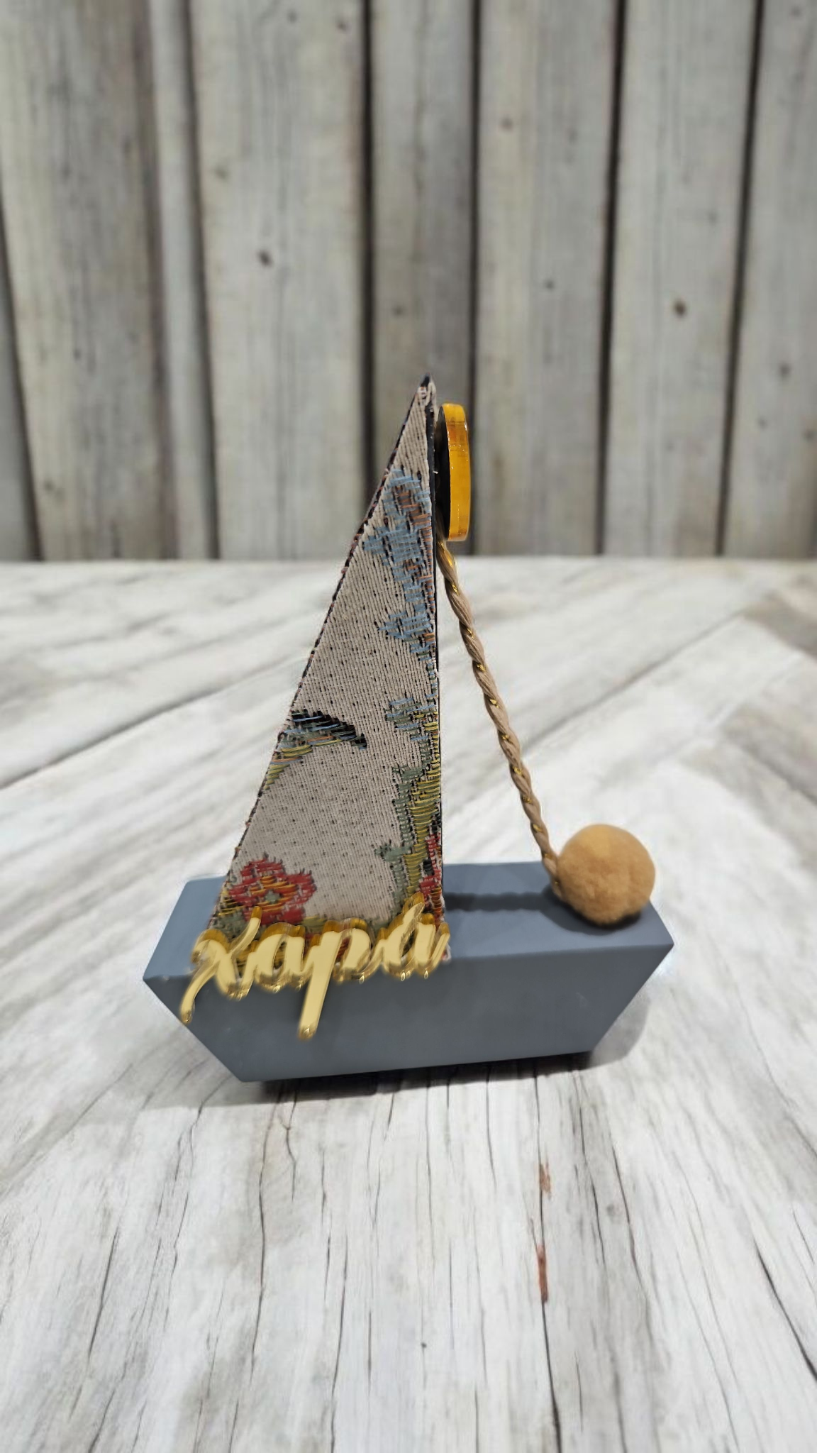 Ξύλινο χειροποίητο καράβι με όμορφες λεπτομέρειες και φυσικό ύφος. Ένα ζεστό, διακοσμητικό κομμάτι που συμβολίζει ταξίδι, τύχη και νέα ξεκινήματα — ιδανικό για δώρο και για κάθε γιορτινό σπίτι.