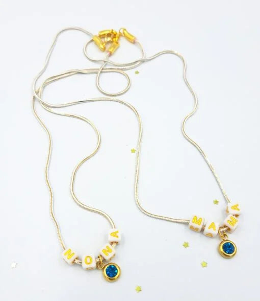 Κολιέ λευκή αλυσίδα στρας μπλε, για την μαμά, την νονά, την θεία, την αδερφή και την γιαγιά.