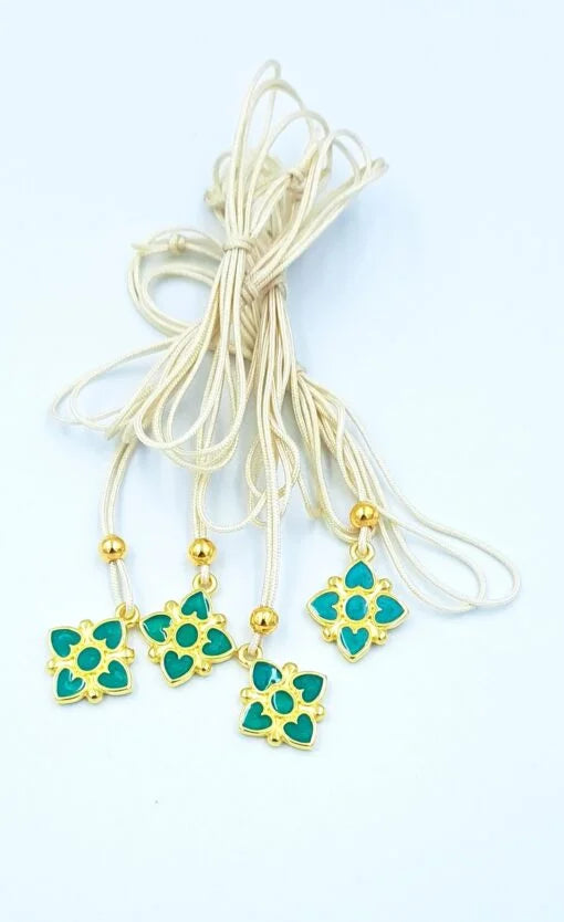 Μαρτυρικό κολιέ, εκρού απόχρωση, σταυρός πράσινο σμάλτο.