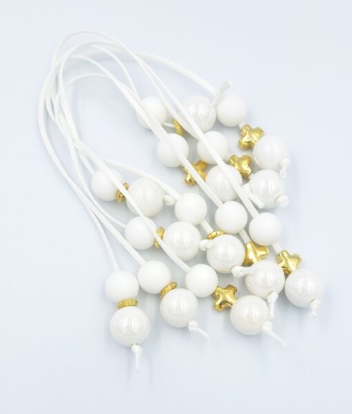 Μαρτυρικό μπεγλέρι σε λευκή απόχρωση με λευκές χάντρες, σταυρός.