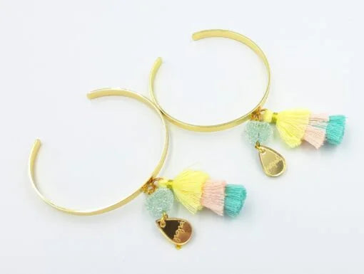 Μπρασελέ με τριπλή φούντα μπεζ-ροζ-βεραμάν και καρδιά σε χρώμα βεραμάν, για την μαμά, την νονά, την θεία, την γιαγιά και την αδερφή.