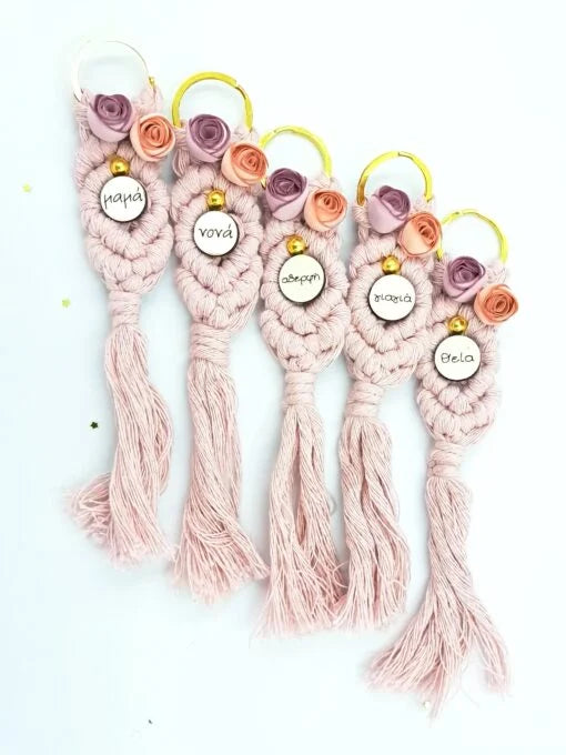 Μπρελόκ, σάπιο μήλο μακραμέ, μοβ-σάπιο μήλο λουλούδια,για την μαμά, την νονά, την θεία, την αδερφή και την γιαγιά.