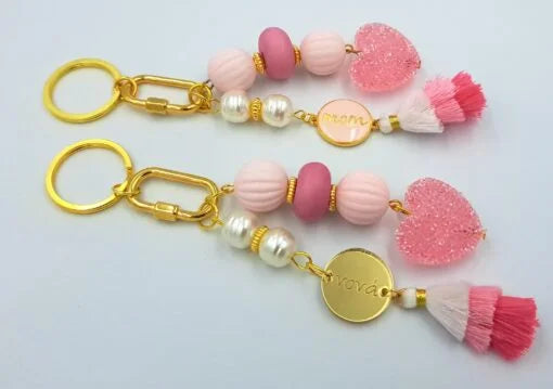 Μπρελόκ, σε ροζ-λευκό-φούξια απόχρωση, ροζ καρδιά, για την μαμά, την νονά, την θεία, την αδερφή και την γιαγιά.