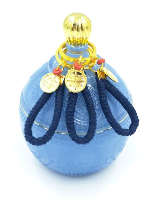 Μαρτυρικό μπρελόκ, μπλε κορδόνι, κόκκινη χάντρα, σταυρός χρυσό χρώμα.