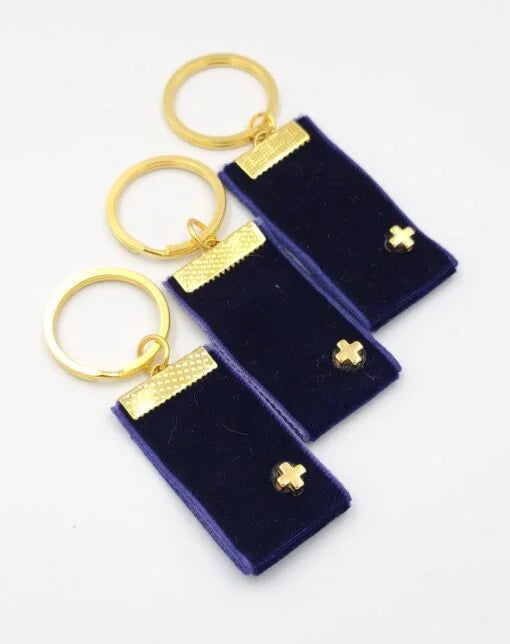 Μαρτυρικό μπρελόκ, μπλε βελούδο, σταυρός.