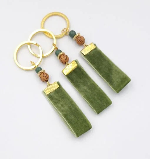 Μαρτυρικό μπρελόκ, λαδί βελούδο σταυρός καφέ χάντρα.