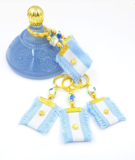 Μαρτυρικό μπρελόκ γαλάζια κορδέλα και σταυρός χρυσό χρώμα.