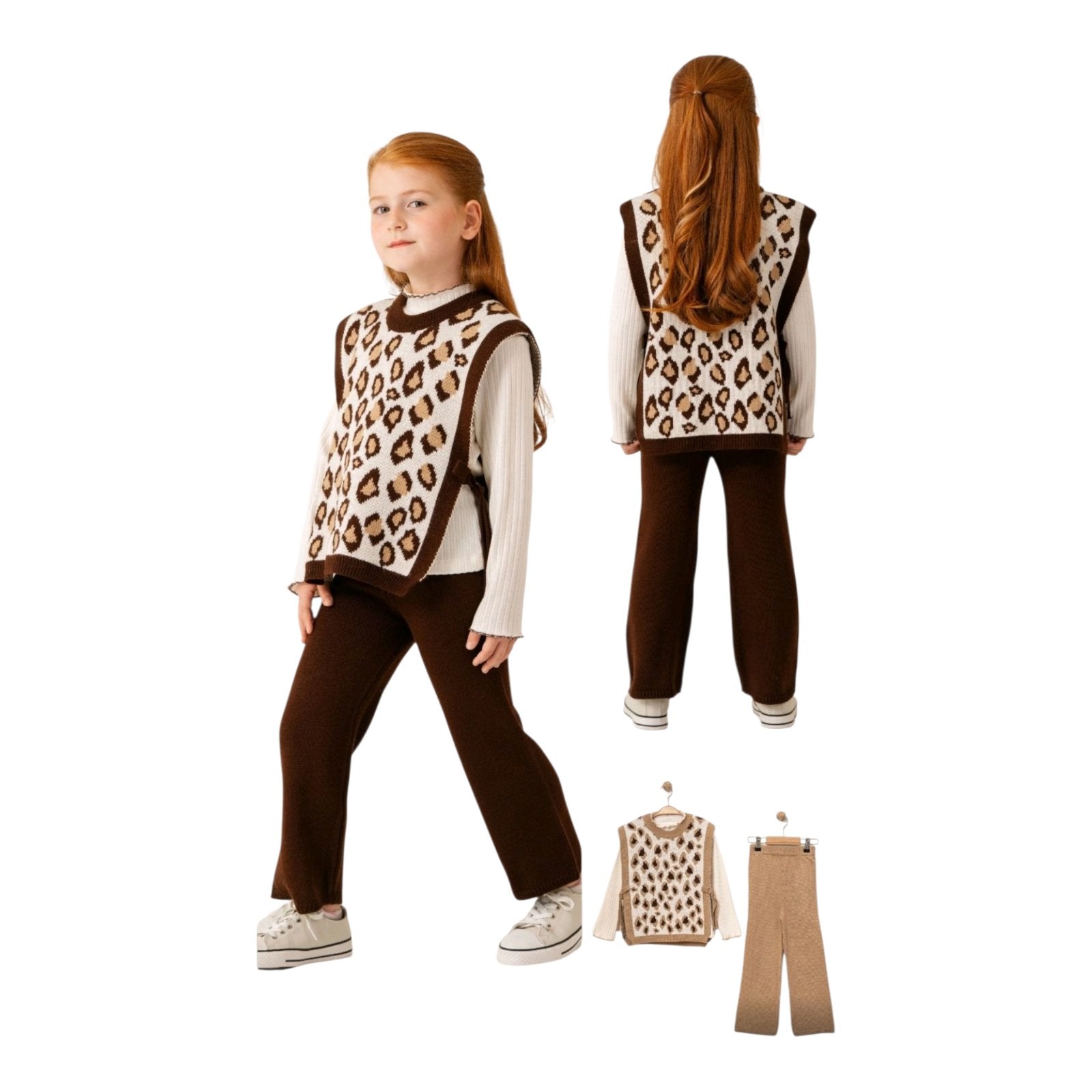 Παιδικό Πλεκτό Σετ Κοριτσιού 3 τμχ – Πλεκτό Γιλέκο, Πλεκτό Παντελόνι & Βαμβακερή Μπλούζα