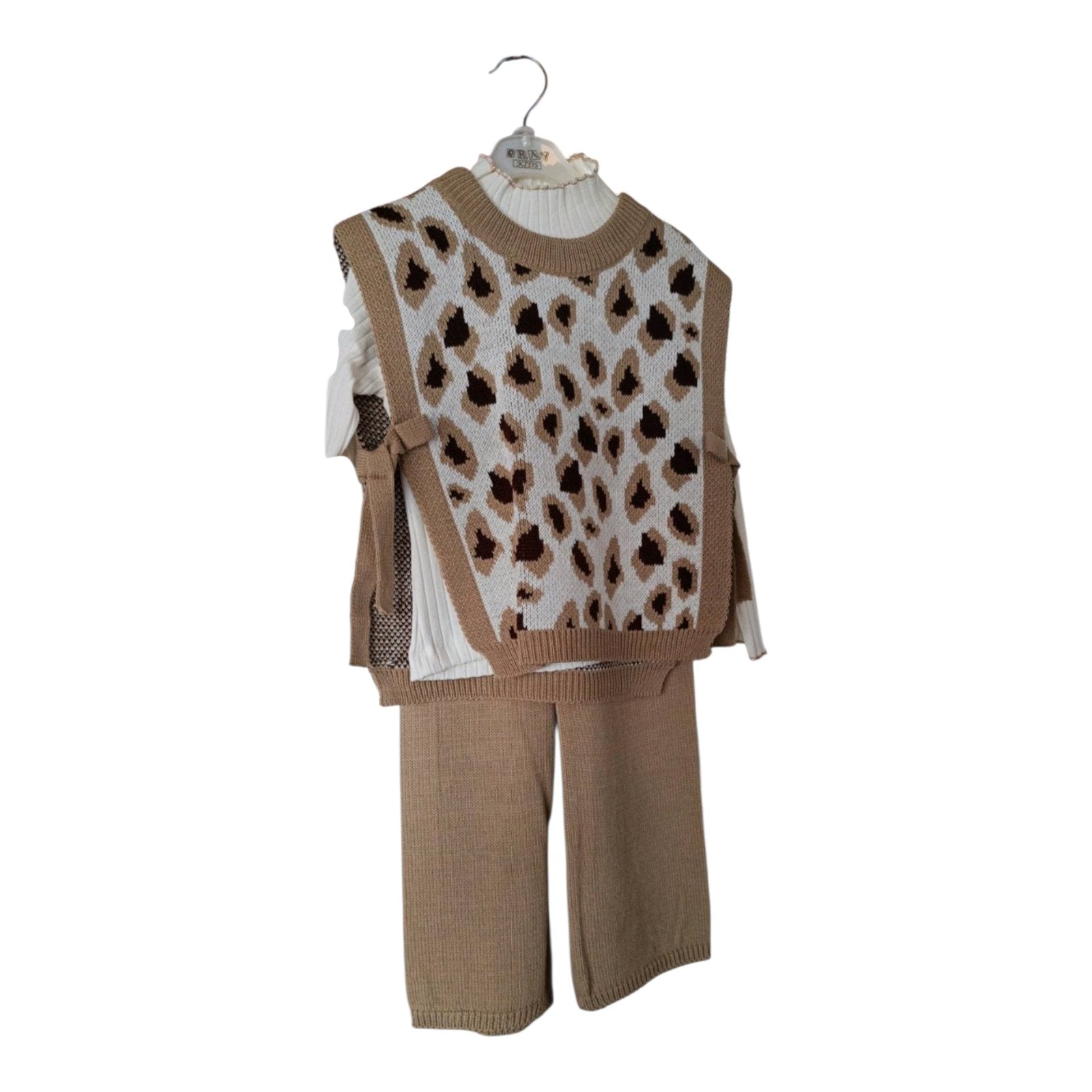 ✔ Πλεκτό γιλέκο με leopard μοτίβο σε εκρού–καφέ αποχρώσεις