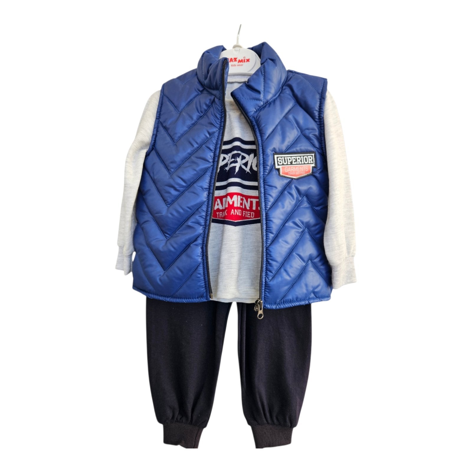 Παιδικό Σετ Αγoριού 3 τμχ – Μπλούζα, Φόρμα & Αμάνικο Μπουφάν “Superior”
