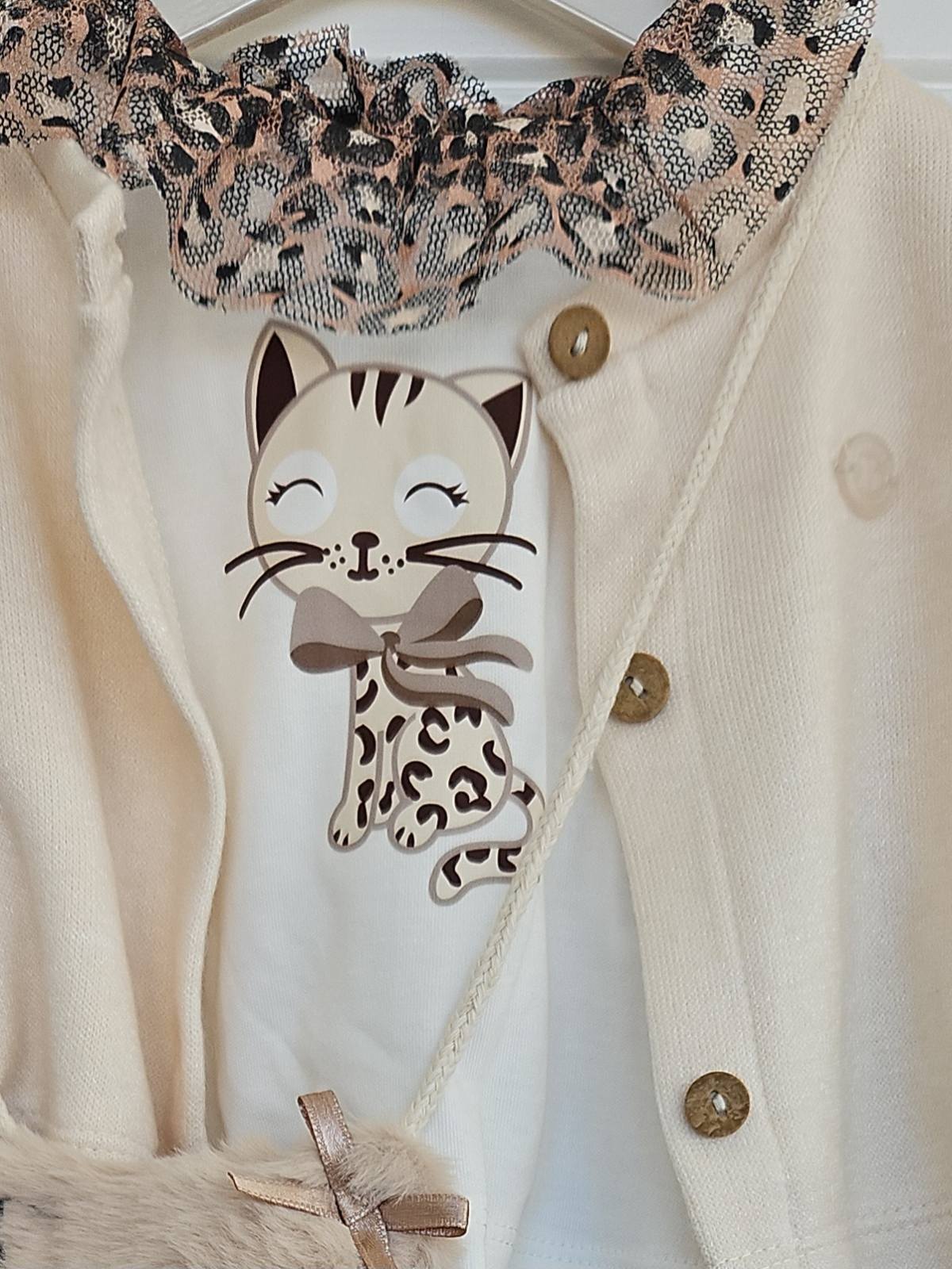 ✔ Βαμβακερή μπλούζα με χαριτωμένο τύπωμα γατούλας και leopard γιακαδάκι