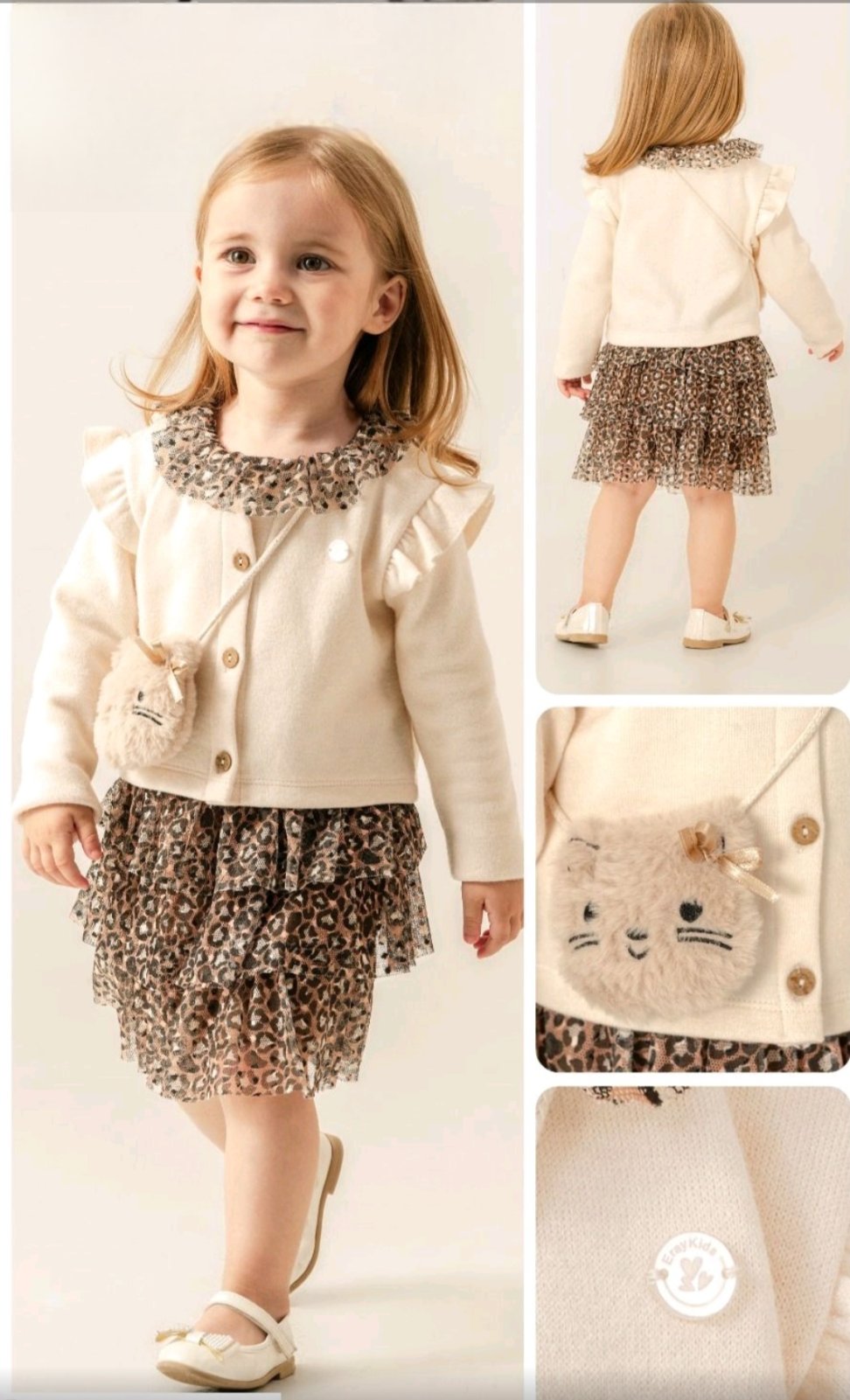 Ένα υπέροχο, κοριτσίστικο σετ 4 τεμαχίων που συνδυάζει κομψότητα και παιχνιδιάρικη διάθεση, ιδανικό για βόλτες, γιορτές και ιδιαίτερες εμφανίσεις!