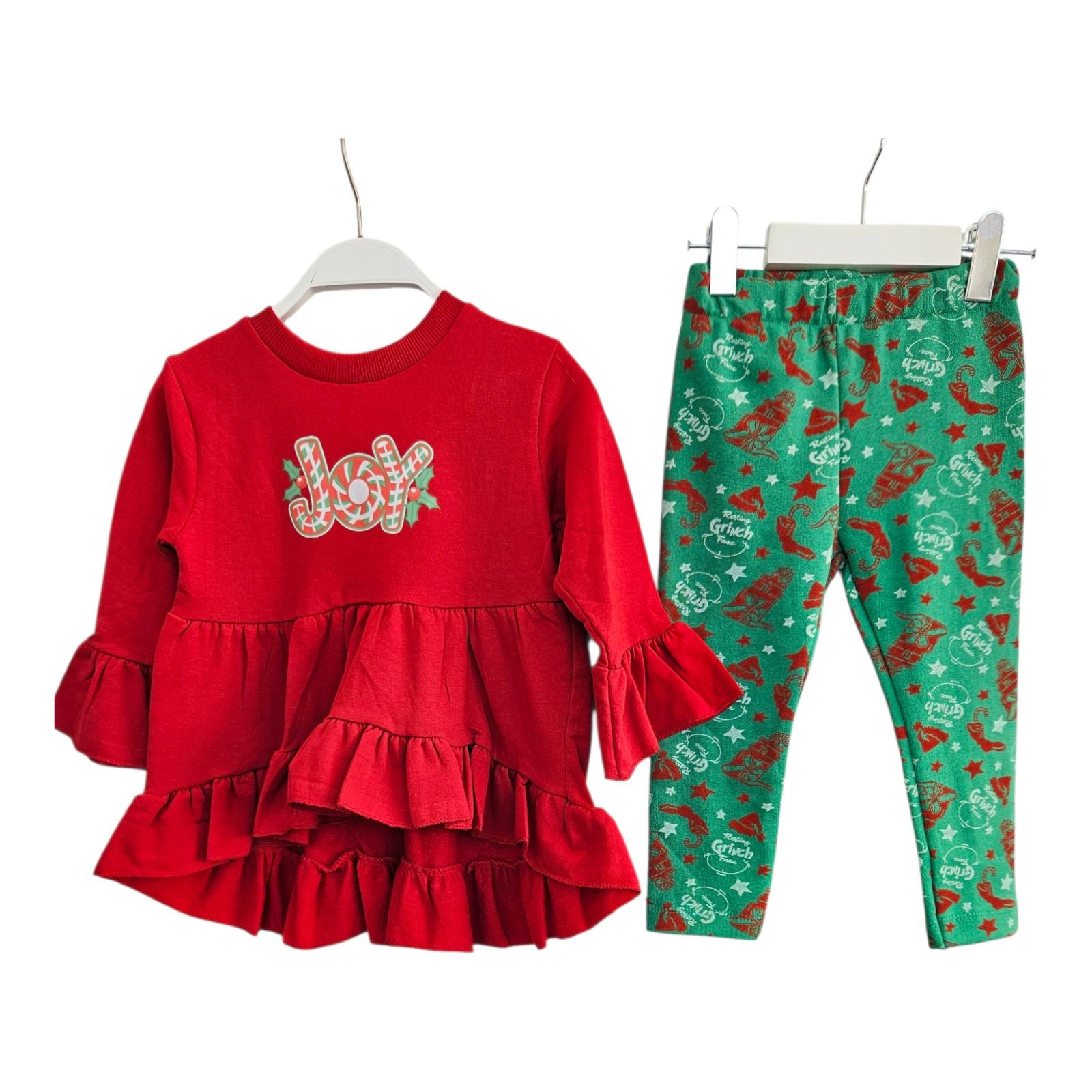 Παιδικό Χριστουγεννιάτικο Σετ Κοριτσιού 2 τμχ – Κόκκινο “Joy” & Κολάν Grinch