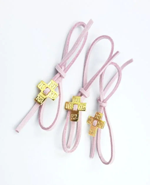 Μαρτυρικό πέτου, λιλά σουέτ, σταυρός.