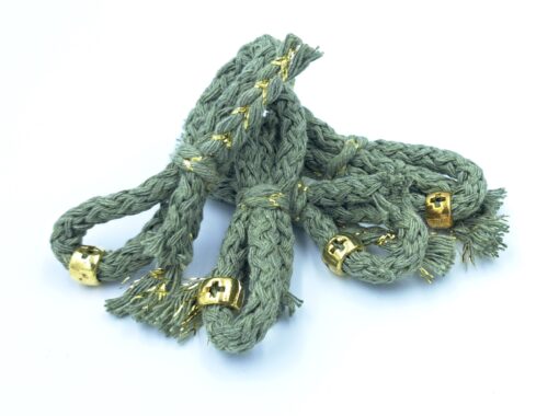 Μαρτυρικό πέτου, λαδί κορδόνι, πλεξούδα λαδί-χρυσό, σταυρός.