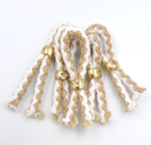 Μαρτυρικό πέτου λευκό μπεζ κορδόνι, σταυρός χρυσό χρώμα.