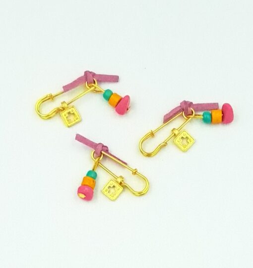 Μαρτυρικό πέτου, παραμάνα πολύχρωμες χάντρες, σουέτ λιλά, σταυρός χρυσό χρώμα.